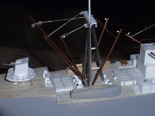 後部 マストとデリッククレーンを製作 ブームは2mmφの銅棒